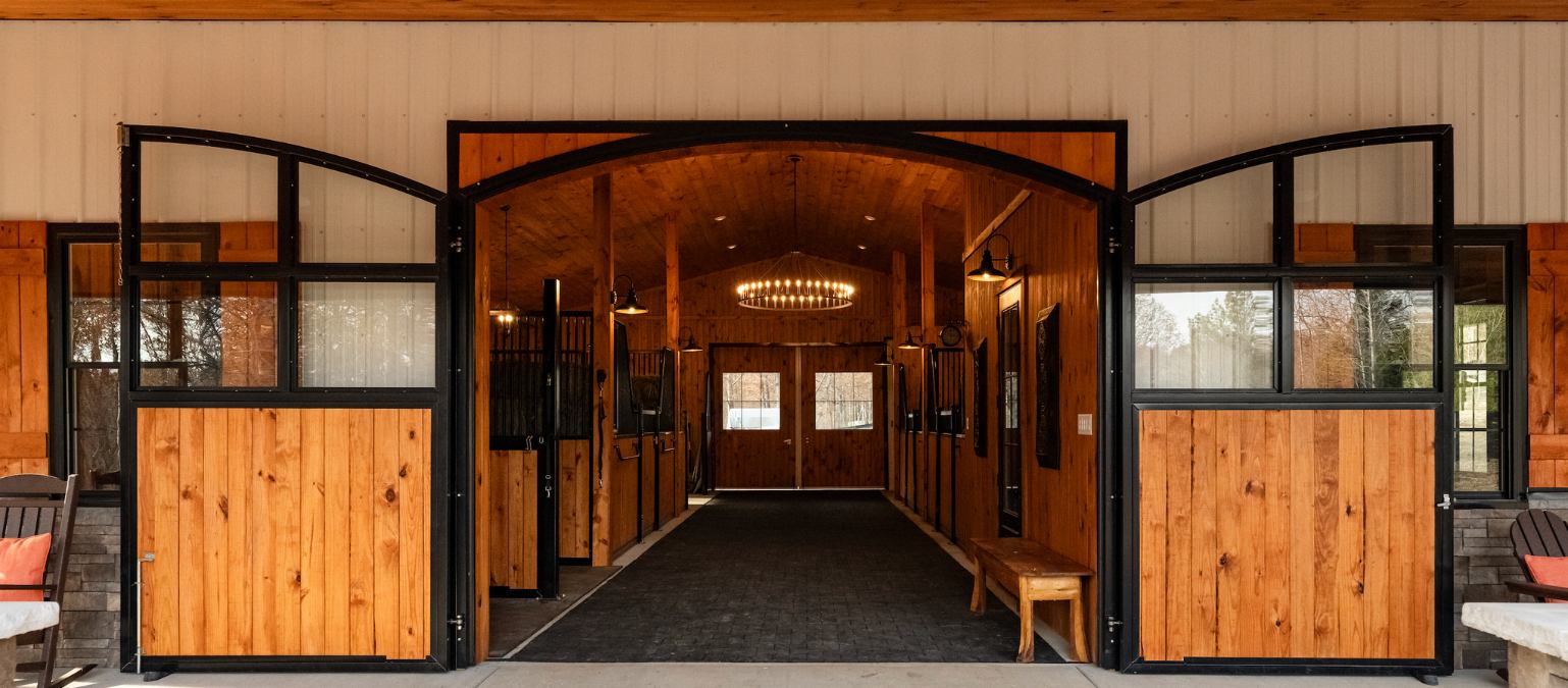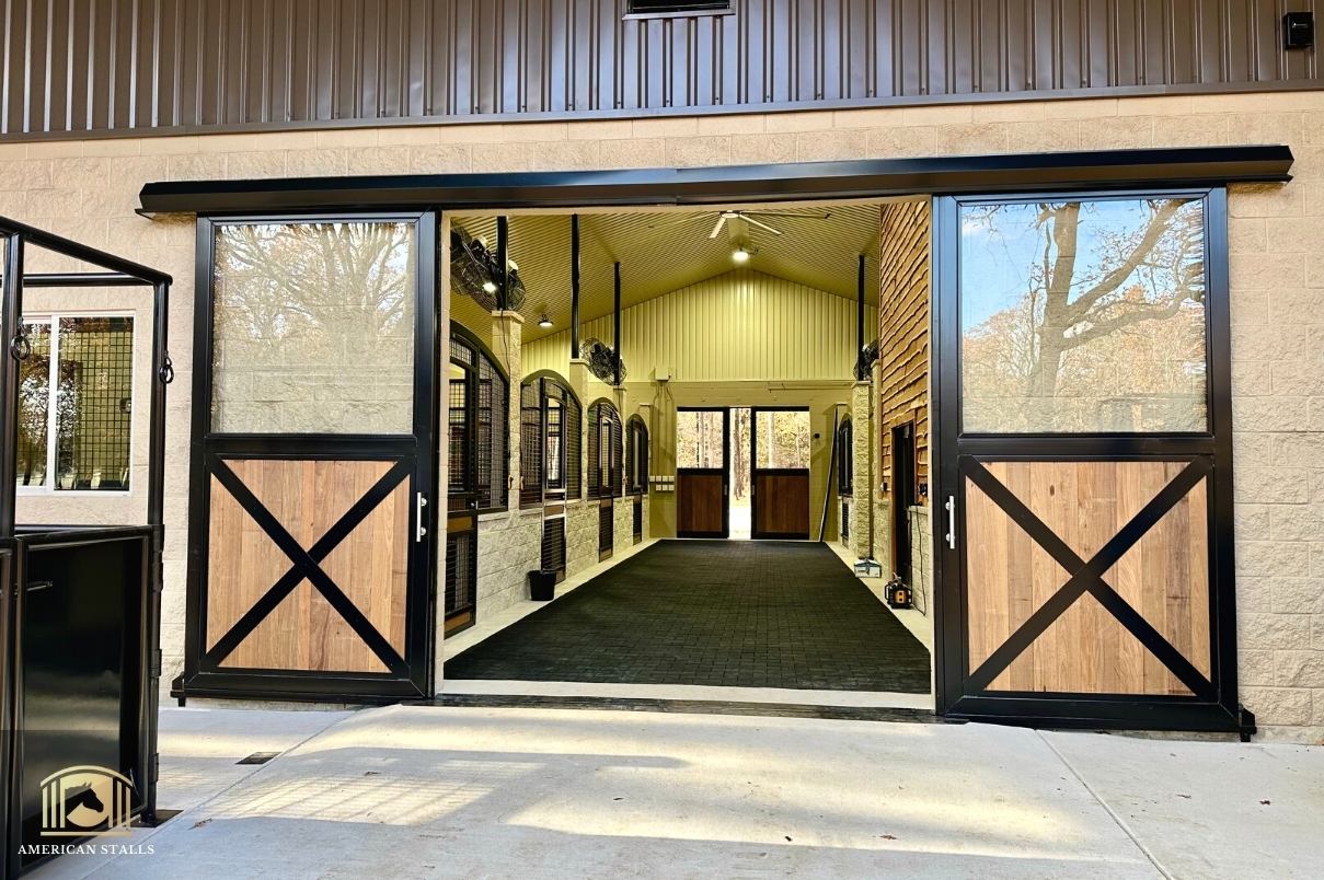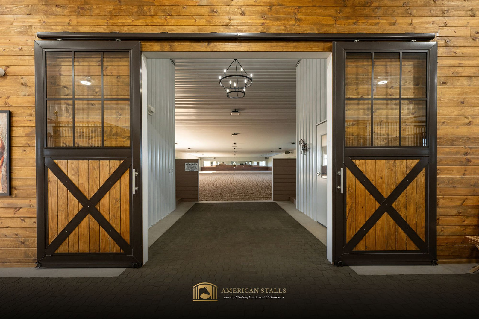 Your Barn End Doors should make a statement and set the tone for the rest of the barn. Your Aisle Entry Doors are one of the most used parts of your horse barn and are visible from the interior and exterior. The expert designers and craftsmen at American Stalls create enchanting horse barn entrance ways that offer the perfect inviting welcome each time you enter.