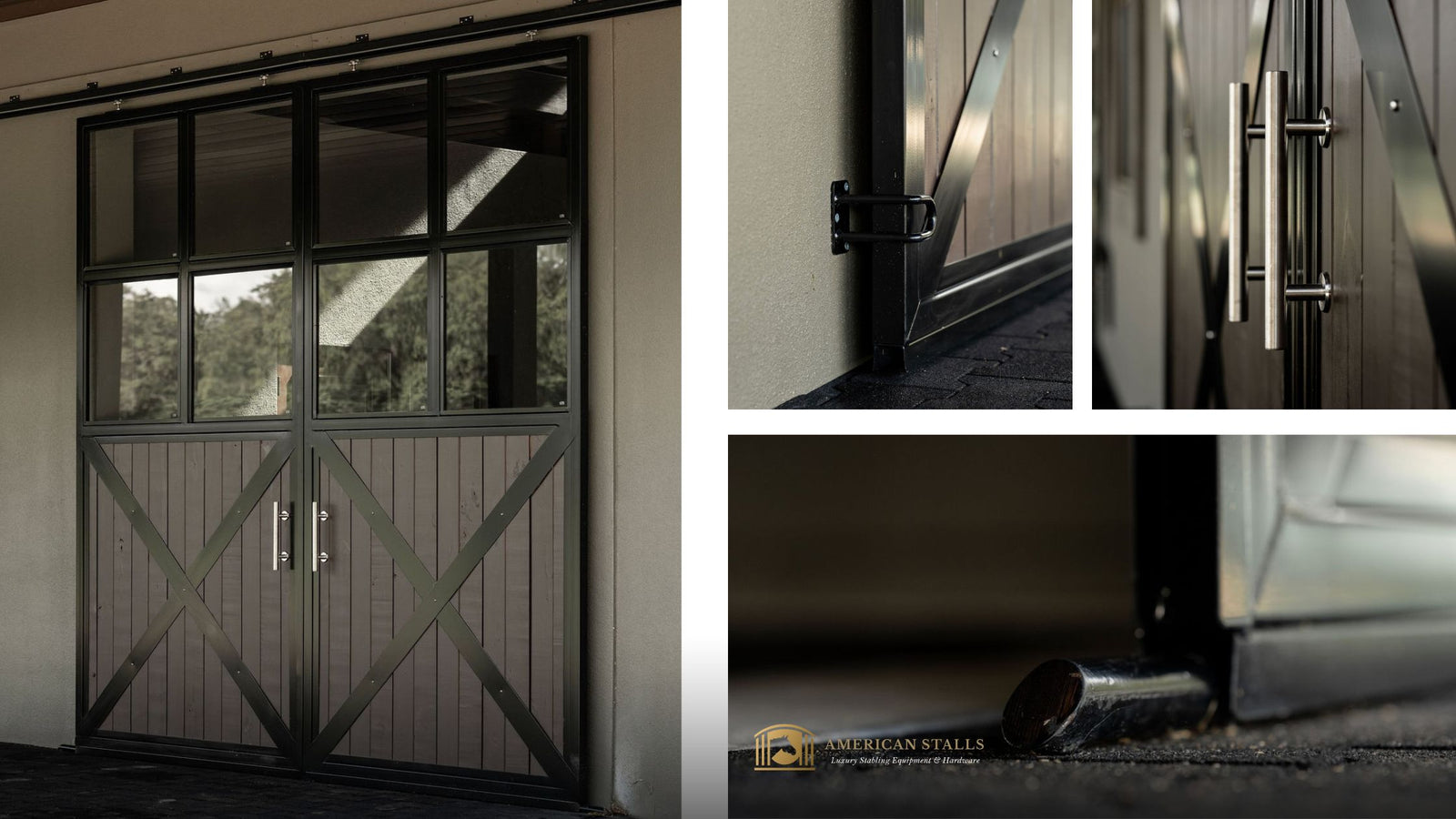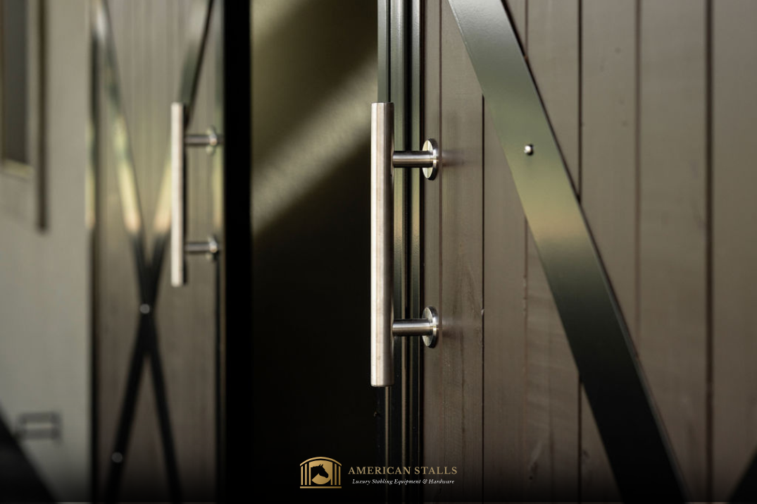 All of our Barn Entry Doors include 304 stainless steel door handles as standard. For equine safety, we don't provide a locking functionality or "latch" for the Barn Entry Doors. This is because we believe that your Aisle Entry Doors should be able to open from the inside or outside in the case of an emergency.