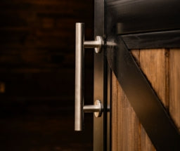 All of our Barn Entry Doors include 304 stainless steel door handles as standard. For equine safety, we don't provide a locking functionality or "latch" for the Barn Entry Doors. This is because we believe that your Aisle Entry Doors should be able to open from the inside or outside in the case of an emergency.