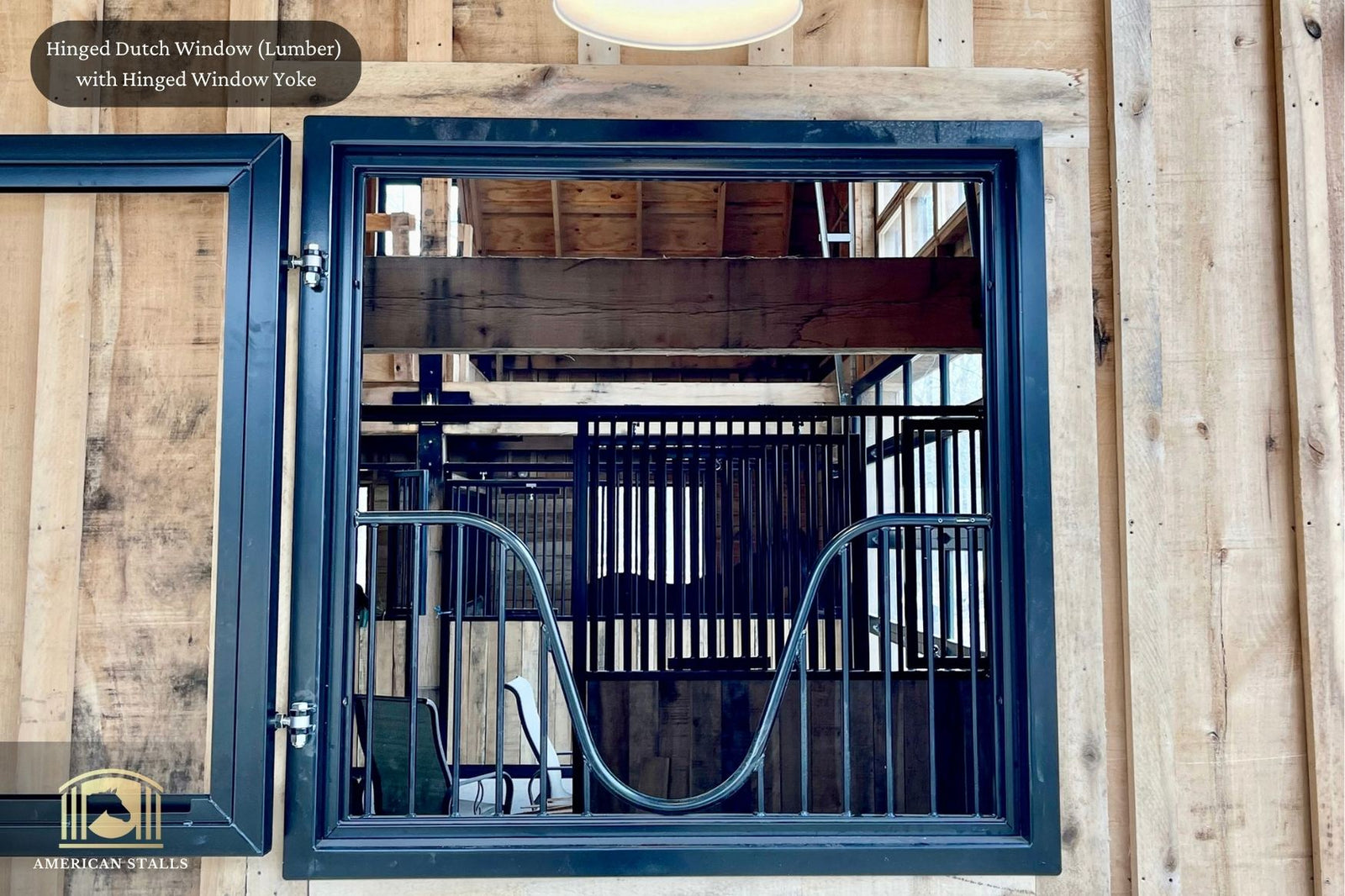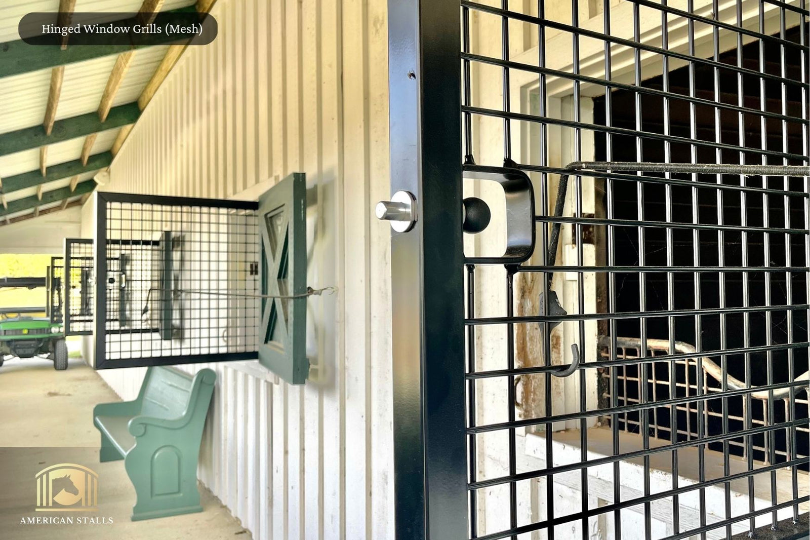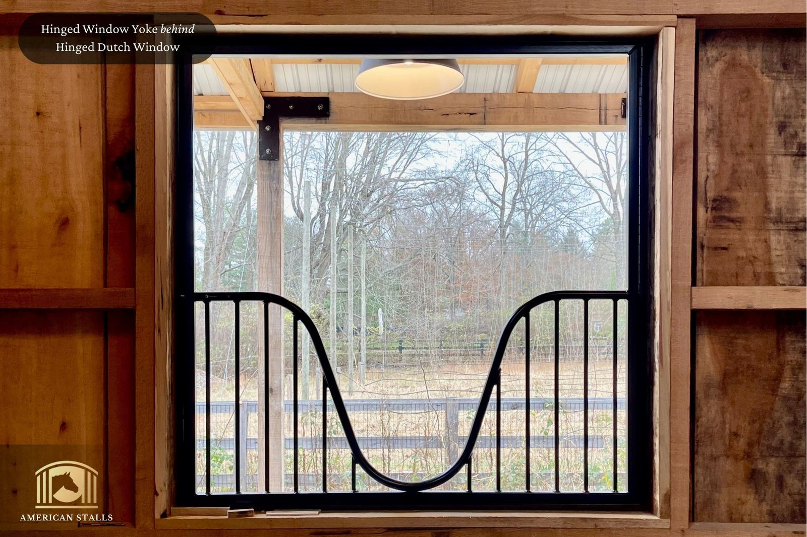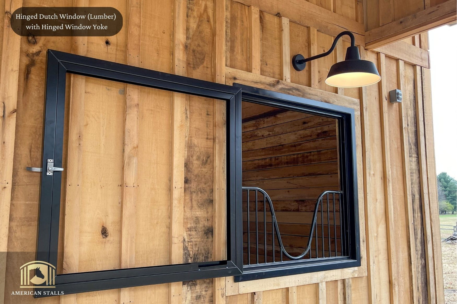 American Stalls offers an exclusive collection of Hinged Barn Windows, Window Yokes, and Window Grills that enhance airflow and natural light in your barn. Our durable Hinged Barn Windows are made to order to ensure they fit your existing window openings perfectly.