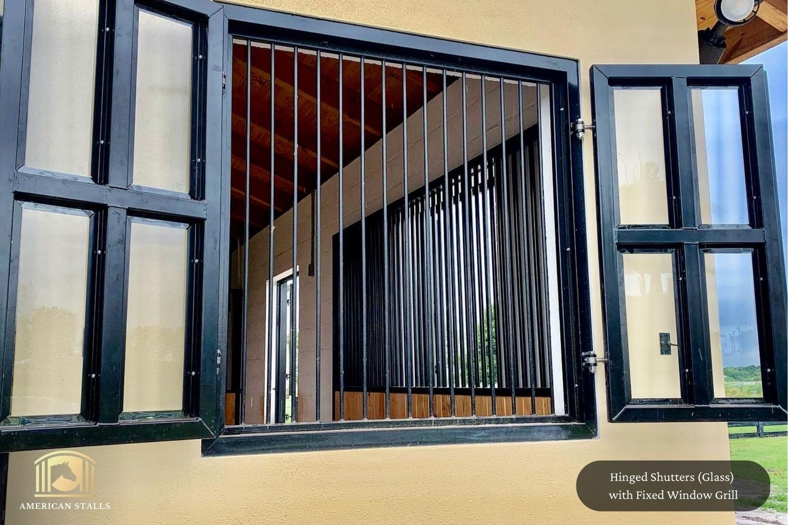 Yes, absolutely! In fact, our team always recommends adding bolted grillwork behind your glass barn windows. This ensures your horse is protected and cannot access the tempered glass. We can weld the window grillwork into the frame, which means that your horse will not be able to stick its head out of the windows. We also bolt the grillwork on the frame behind the glass, allowing the protective grill guard to move with the opened window.