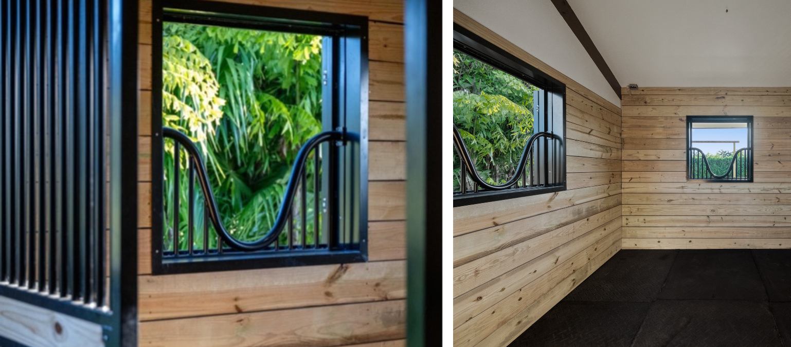Our experienced team of horse enthusiasts will help you design the perfect barn windows to complement your barn's exterior. Whether you live in South Florida or the colder climates of Wyoming, our team of designers and skilled artisans can craft luxury windows that are an ideal fit for your horses and your barn. Choose from endless customizations, from glass designs to lumber-fill and more. If you have dreamed of it, we can make it!