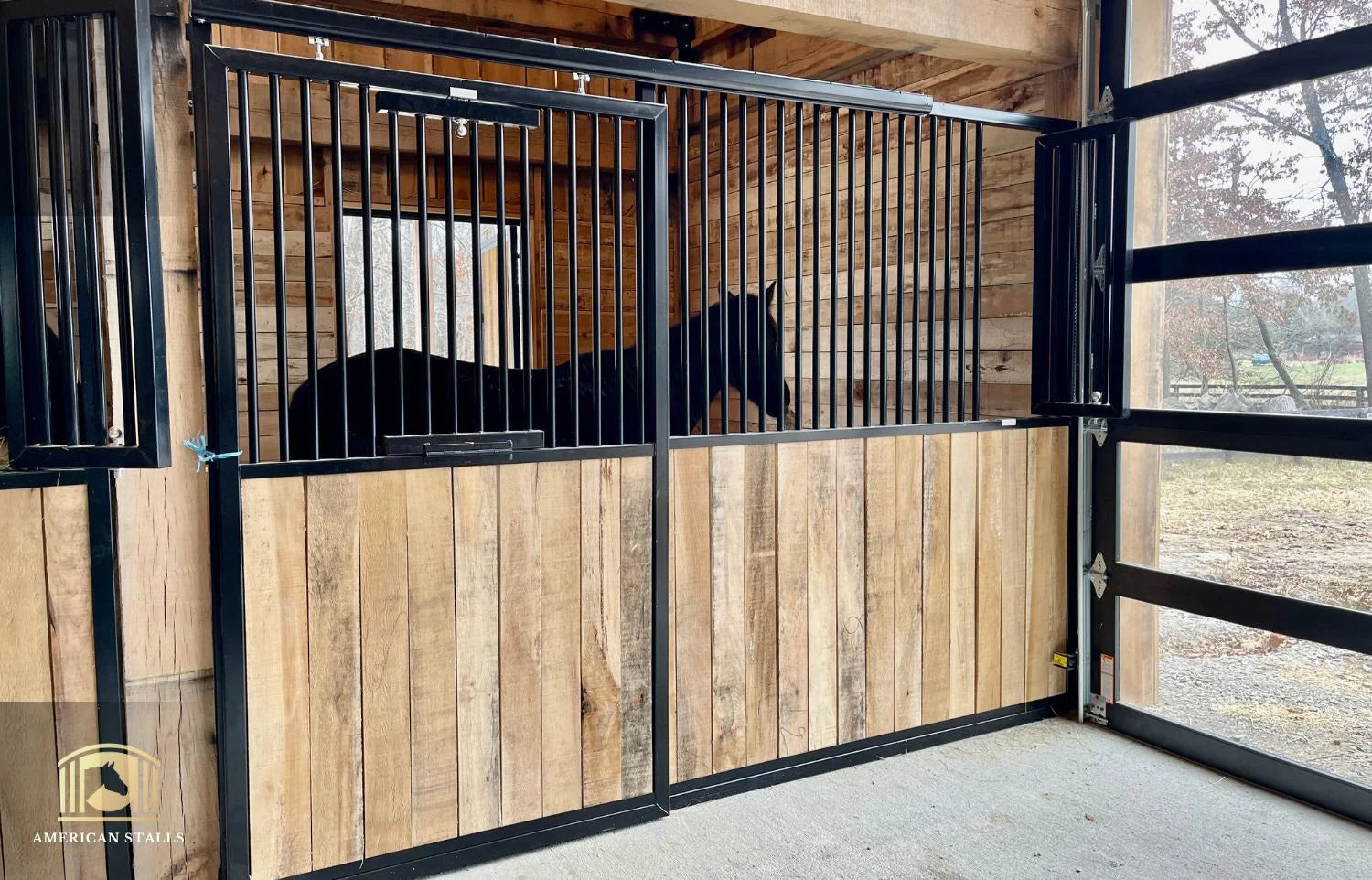 As a leading manufacturer of horse stalls, we custom build our horse barn stall doors to fit your exact specifications, design goals, and lifestyle needs. Each sliding stall door is handcrafted with the finest raw materials and powder-coated to ensure longevity. Whether you’re building a new barn or upgrading your existing doors, you can count on American Stalls for high-quality, reliable, and stylish solutions.