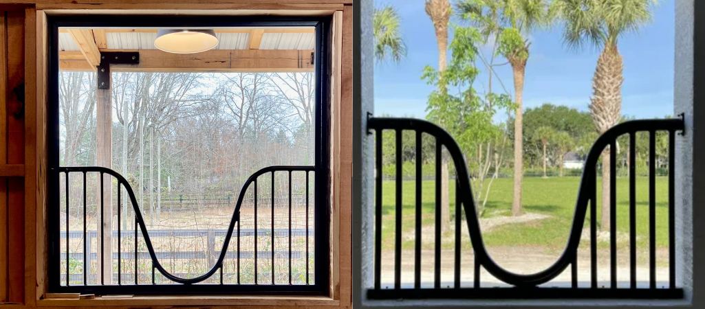 Our Window Grills and Yokes are designed to bring light, air, and enrichment into your barn while keeping your horses safe. These thoughtfully crafted solutions allow for natural ventilation and socialization, creating a healthier and more comfortable environment for both horses and humans.